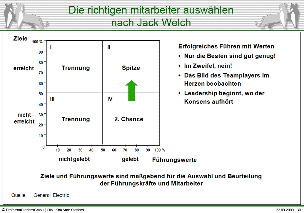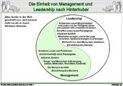 In turbulenten Zeiten ist Leadership wichtiger als Management, wenn es darum geht, radikale Veränderungen durchzusetzen und die unternehmerischen Veränderungsprozesse so zu gestalten, dass Werte für alle Stakeholder geschaffen werden. Die Teilnehmer lernen verschiedene Führungsstile kennen, und schätzen ihren eigenen Führungsstil anhand von erprobten Skalen ein. Anschließend werden an praxisnahen Fällen verschiedene Führungsstrategien diskutiert.