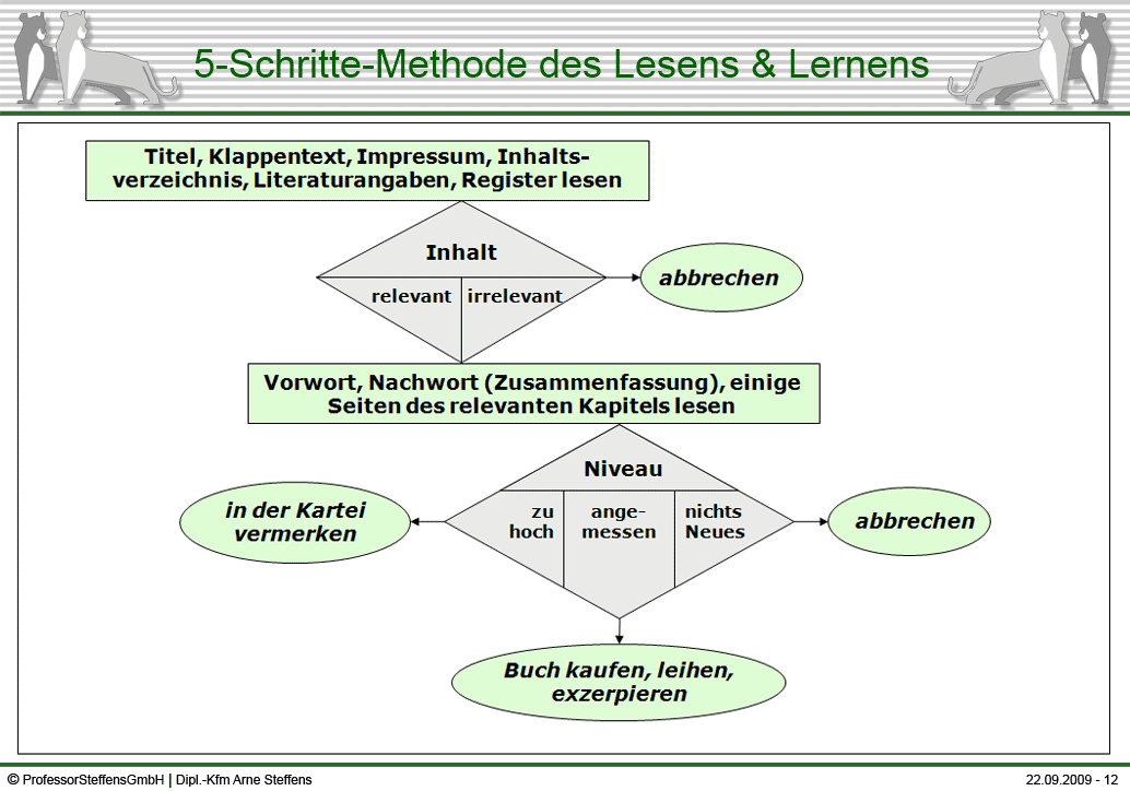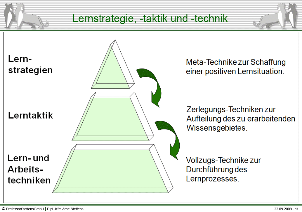Wissensmanagement ist in aller Munde. In der Fachliteratur und Fachpresse liegt der Fokus hierbei auf Modellen zur Beschreibung, Bewertung und Verbreitung von Wissen. All diese theoretischen Modelle grenzen aber die wesentlichen Probleme und das Hauptziel aus: den Menschen. In diesem Seminar geht es darum wie Sie ihr individuelles Wissensmanagement verbessern können und es in Einklang bringen mit dem Wissensmanagement Ihrer Unternehmung. Wesentlich hierfür sind Lern- und Arbeitstechniken. Lern- und Arbeitstechniken sind Methoden, die dem Aufnehmen, Verarbeiten und Weitergeben von Wissensstoff, der sinnvollen Planung der Zeit sowie der rationellen Erledigung der anfallenden Arbeiten, dienen.